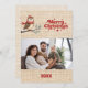 Merry Christmas beige burlap retro owl photo card