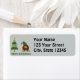 Merry Christmas! Holiday scene featuring a cute bigfoot wearing a Christmas elf hat.