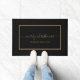 Elegant Merry Christmas Doormat with a golden script on a black background. Personalise with your family name or text.