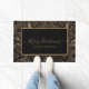 Modern welcome doormat with a gold script on a gold black abstract swirl background. Personalise with your family name or text.