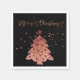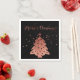 These elegant "Merry Christmas" cocktail napkins feature a black background with "Merry Christmas" in fancy pink font the Christmas tree is lovely and pink with faux foil. Place your order today!