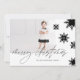 Chic, modern, and stylish black and white holiday photo card with a minimal and bold snowflake design. Features a single family photo layout to display your own special holiday photo. Bold and elegant snowflakes cascade from the top of the card with "Merry Christmas" displayed in modern calligraphy. The reverse side features an abstract snowflake background design in black and white. All illustrations are hand-drawn original artwork by Moodthology Papery.