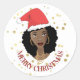 Merry Christmas Black Woman Red Santa Hat Gold Dot Classic Round Sticker