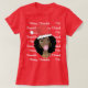 I loved the T-shirt, it is exactly as I designed with changes, the right size and colours, and I am awed at the speed of delivery to NZ in 17 days right before Christmas, thank you so much. My sister loved it! I chose an existing design and added one or two personal details. Adding elements was very easy and straightforward, choosing colours was easy. The colours were perfect, all the right size and style lettering