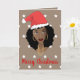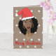Merry Christmas! Black Woman Santa Hat White Stars Card