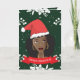 Merry Christmas, Black Woman w/Santa Hat, Green Holiday Card