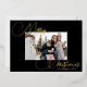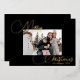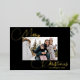 Bold and classic block frame and gold foil script lettering over black. Merry Christmas with custom name and date. Room for additional photos or text on reverse side.