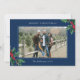 Merry Christmas Blue Custom Classic Holly Berries. A simple and elegant design featuring vintage holly and Christmas berries and a photo with messages you can customise. At the back of the card is a personalised message you can customise.