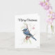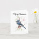 Merry Christmas with painted watercolor blue jay bird with berries. Art by Jenn Steffen, Jenn's Emporium.
