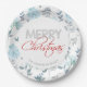 Merry Christmas | Blue Watercolor Floral Paper Plate