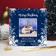 Merry Christmas Blue & White Snowflakes Photo Holiday Card