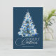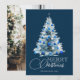 Merry Christmas Blue White Watercolor Tree Holiday Card
