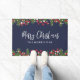 Greet your holiday visitors with this beautiful door mat featuring Merry Christmas script text framed by a pine bough and red berry border set against a navy blue background. Add your Family name to customise. Fun and modern yet classic and simple, perfect as a holiday, hostess, wedding or winter birthday gift.