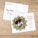 This design features Merry Christmas with merry Christmas holiday wreath with a modern photo family 1 one picture layout, simple elegant family minimalist, rustic green typography script red, a trendy botanical pine nature leaves, stylish trendy brush script font, simple watercolor greenery branches, Christmas holiday red holly berries, green winter foliage holly berry, Christmas holiday photo birth announcement cards
