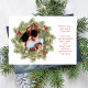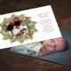This design features Merry Christmas with merry Christmas holiday wreath with a modern photo family 2 two picture layout, simple elegant family minimalist, rustic green typography script red, a trendy botanical pine nature leaves, stylish trendy brush script font, simple watercolor greenery branches, Christmas holiday red holly berries, green winter foliage holly berry, Christmas holiday photo birth announcement cards