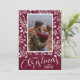 White leaves and dots on a burgundy background accent your favourite photo with your names and greeting in chic lettering at the bottom. Select Matte for heaviest paper and high definition for best print quality. MORE COLORS in our collection.