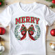 Embrace a touch of festive charm with this "Merry" Christmas tee, perfect for adding a coquette touch to your holiday wardrobe. The delicate bow, adorned with holly and sparkling accents, creates a sweet and whimsical design that captures the spirit of the season. This versatile shirt is ideal for holiday parties, cosy gatherings, or simply adding a touch of feminine flair to your everyday winter attire. Spread holiday cheer with a dash of coquette charm!