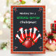 This festive Christmas bowling greeting card features Santa-themed bowling pins and a bright red holiday bowling ball set against a cheerful Christmas plaid background the perfect design to spread seasonal fun and party cheer.