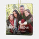 Modern Brush Script Merry Christmas Family Photo Ornament - Square, White Script - Photos Front and Back