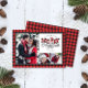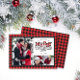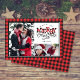 MERRY Christmas Buffalo Plaid Border 3-Photo Holiday Card