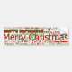 The holidays, special days and seasons of our lives help us mark and track the passage of time, collecting memories as we share traditions, time, food, music, gifts, and greeting cards with each other. No holiday is more imbued with tradition, music, gifts, food, and family time than Christmas. Share your good wishes with the world this holiday season with the "Merry Christmas" bumper sticker.