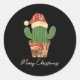 Merry Christmas Cactus Patchwork Quilt Classic Round Sticker