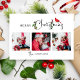 Merry Christmas Calligraphy Botanical 3 Photo Holiday Card