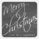 An festive Merry Christmas sticker featuring a calligraphy script font set against a black chalkboard background. The perfect sticker for your holiday packages and gifts. Add your name to customise.