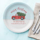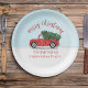 Merry Christmas Calligraphy Cute Rustic Red Truck Paper Plate