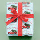 Merry Christmas Calligraphy Cute Rustic Red Truck Wrapping Paper Sheet