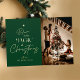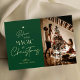 Spread the festive spirit with a personalised family photo Christmas greeting card. This calligraphy holiday card includes space for one big family photo and your family name. The real foil typography design complements this Merry Christmas card perfectly and the emerald green background brings that Christmas spirit.