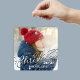 Merry Christmas Calligraphy Navy Blue Plaid Photo Ceramic Ornament