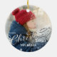 Merry Christmas Calligraphy Red Green Plaid Photo Ceramic Tree Decoration