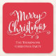 Merry Christmas Calligraphy Script Cute Red Simple Square Paper Coaster