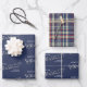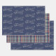 This design features a merry Christmas calligraphy script wrapping paper with a simple navy blue plaid pattern, silver calligraphy stylish trendy font, simple minimalist pattern design, rustic country red green blue, Christmas holiday wrapping supplies, custom customised personalised gift wrap, simplistic elegant classic classy cute, cute creative typography style text, whimsical whimsy cute fun paper