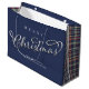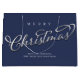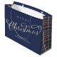 Merry Christmas Calligraphy Script Navy Blue Plaid Large Gift Bag