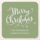Merry Christmas Calligraphy Script Simple Green Square Paper Coaster