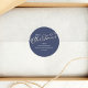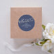 Merry Christmas Calligraphy Winter Navy Blue Plaid Classic Round Sticker