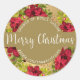 Merry Christmas Calligraphy with Pointsettias Classic Round Sticker