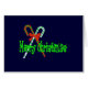 Merry Christmas Candy Canes tied with a Red Bow Christmas card. This original art shows two crossed striped candy canes--one in red and green, the other in green and white.