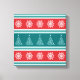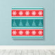 Merry Christmas illustration with Christmas tree and snowflakes decoration on red, white, blue and turquoise striped background