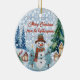 Merry Christmas Charming Snowman Village Monogram Ceramic Tree Decoration