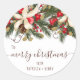 Merry Christmas chic floral green red pine floral Classic Round Sticker