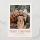 This warm holiday design features a cozy winter photo framed by a soft cream background and accented with a shimmering foil “Merry Christmas” greeting. The layout highlights your favorite family or pet portrait while keeping the focus on the elegant metallic lettering below. Clean, simple typography allows space for a family name or short message, creating a timeless and inviting holiday look. Perfect for showcasing snowy scenes, outdoor portraits, or seasonal moments with loved ones.