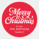 This simple red holiday gift sticker features a classic Merry Christmas in a flourish script and personalised text. Add this Christmas gift sticker to your presents - the classic red coordinates with a variety of gift wrap styles. This design also works well for Christmas party favours. Find more colours and styles in the collection by Lea Delaveris Design.