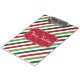 Merry Christmas illustration with text and snowflakes design on red, white and green striped background