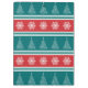 Merry Christmas illustration with Christmas tree and snowflakes decoration on red, white, blue and turquoise striped background