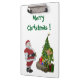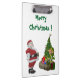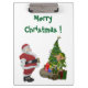 "MERRY CHRISTMAS" SANTA CLAUS AND ELF BY THE CHRISTMAS TREE WITH PRESENTS