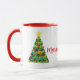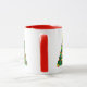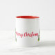 Enjoy your coffee , eggnog or cocoa in a super cute Christmas mug that features the phrase " Merry Christmas " in red font, in the centre of two colourful Christmas trees , against a white background. Choice of handle colours available. Artwork by Buttercup's Clothing and Collectables.
