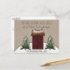Merry Christmas Country Saltbox and Trees Decking New Halls for the Holidays New Home - Adorably country postcard reads " We are decking new halls for the holidays" in handwritten style typography over a burgundy country saltbox house with a snowy roof and snow kissed pine trees on either side. Card is shown on a Kraft background. The back of the card allows for room for your return address, a Christmas greeting (editable) and room for you to address your cards. If you prefer not to have the lines, you can always turn off or delete those layers.
